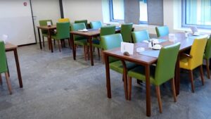 Na wat gewend te zijn voelt het hier soms als een hotel. Alles is verzorgd, het ontbijtbuffet, de lunch en het avondeten, het is van uitstekende kwaliteit. In het grote restaurant is voor de Nederlandse patiënten een ei-gen hoek gereserveerd.